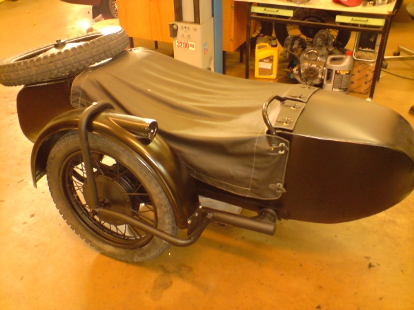 1956 a. külgkorviga mootorratas, harvaesineva liigendesihargiga.